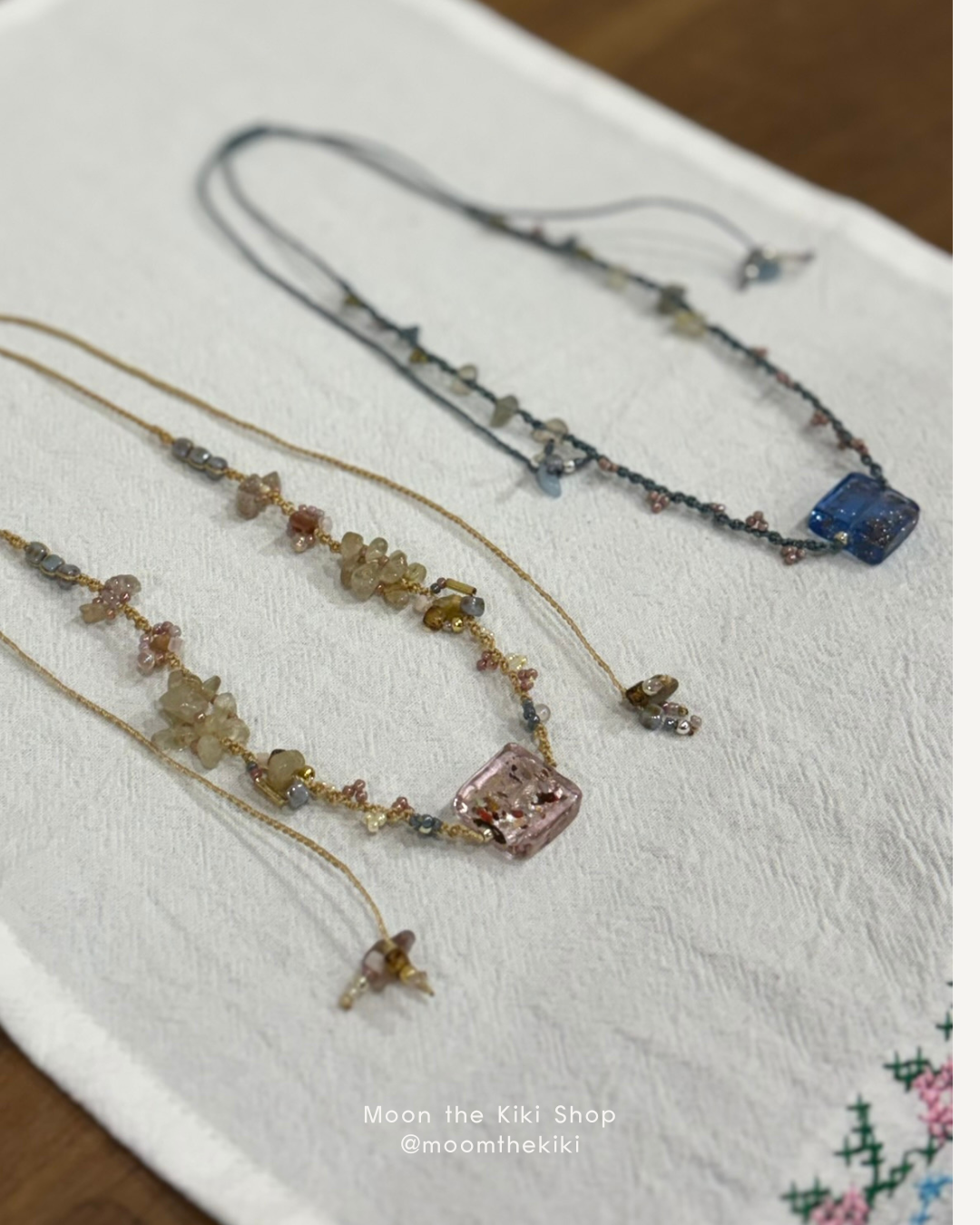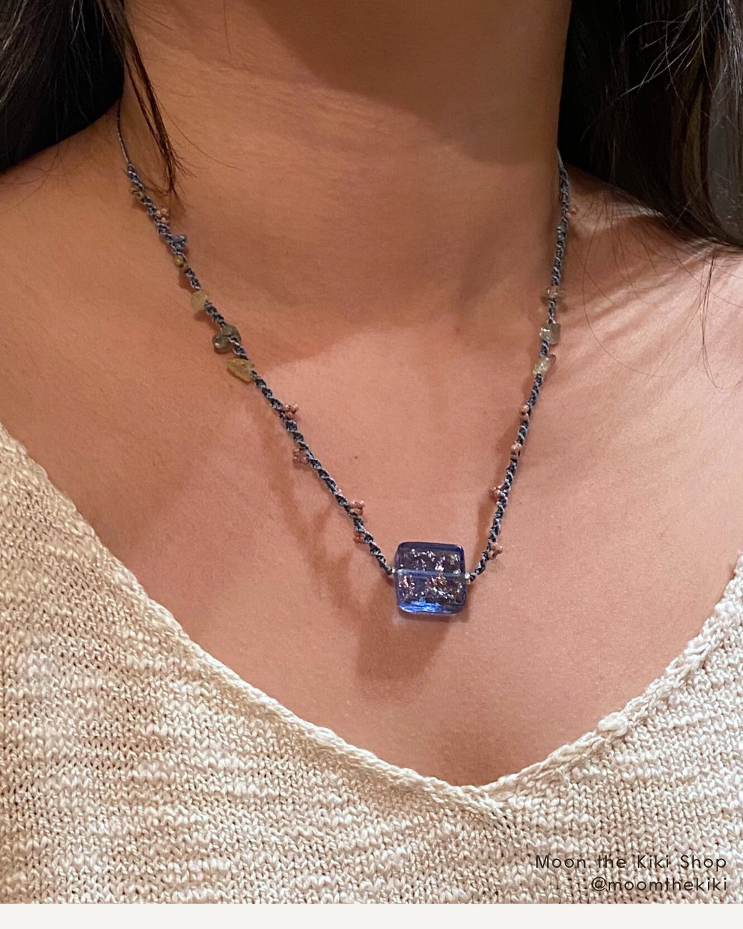編織項鍊 : 蠟線、原礦石、捷克珠、日本東寶古董米珠