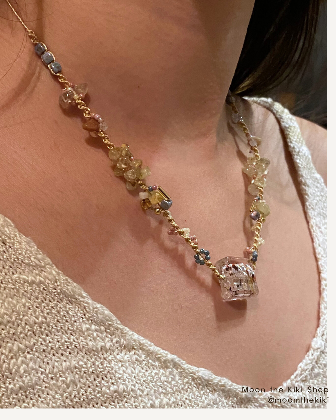 每款只有一個,獨一無二的手工項鍊,用原石與日本古董珠珠編織。適合搭襯衫、針織衫、素T。小批製作,每一條都用心完成。